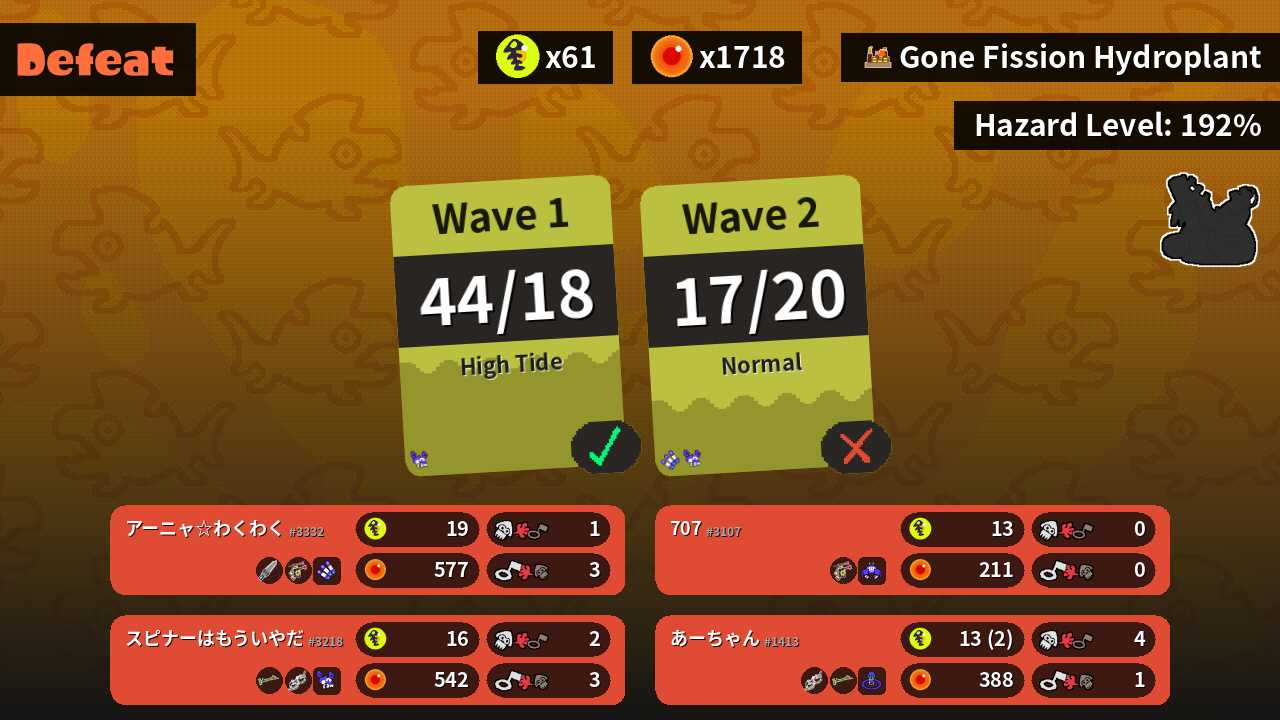 | Special | Triple Inkstrike (1) | Triple Splashdown (2) | Wave Breaker (0) | Crab Tank (0) |