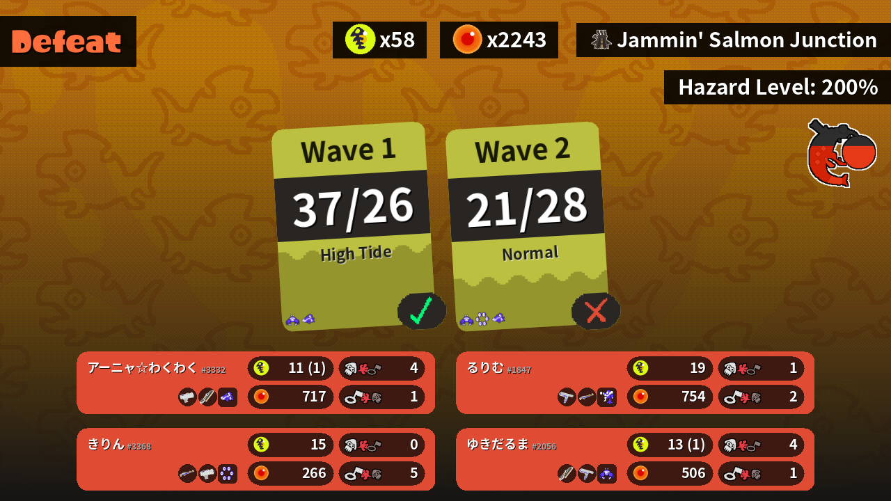 | Boss Salmonid | 9 | 12 | 6 | 8 |