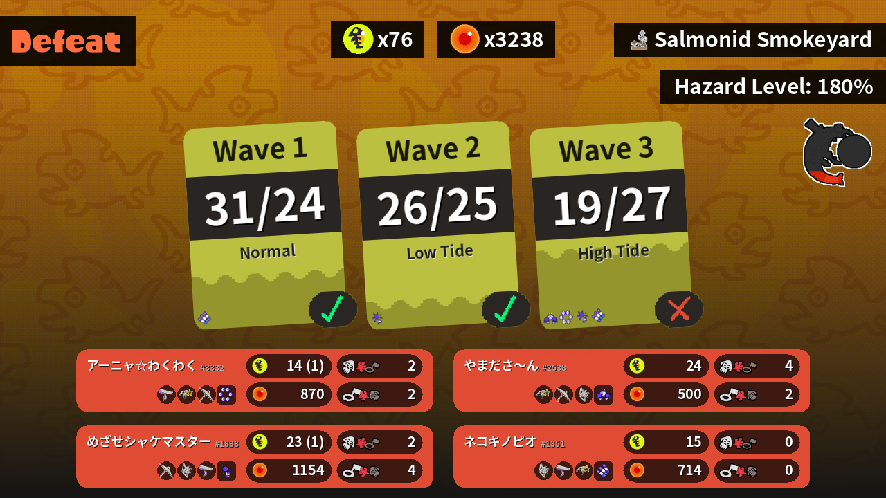 | Boss Salmonid | 9 | 9 | 15 | 11 |