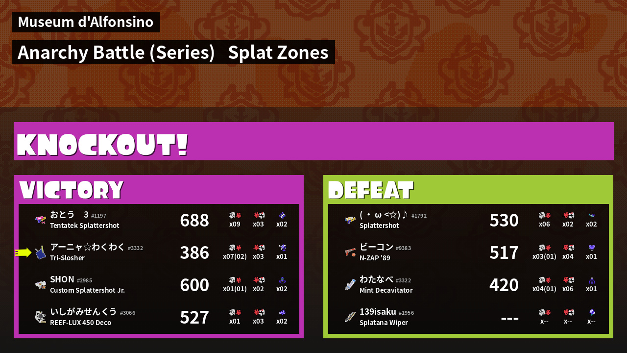 | Mode | Splat Zones - Anarchy Battle (Series) | ||