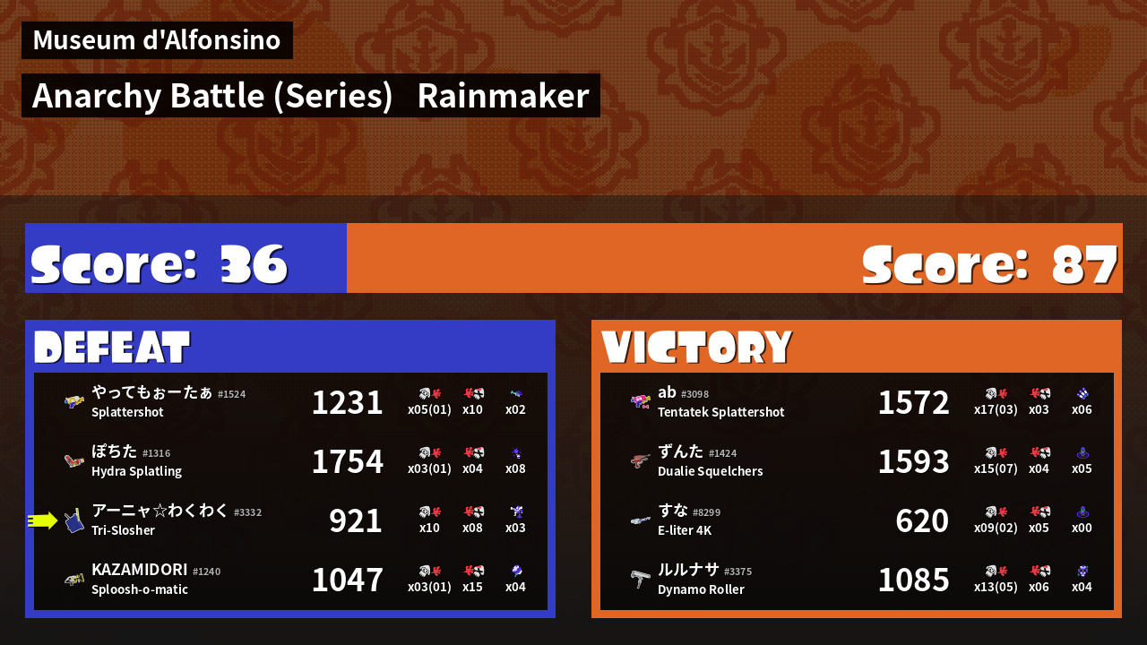 | Medals | #1 Overall Splatter #1 Enemy Splatter #1 Rainmaker Stopper | ||