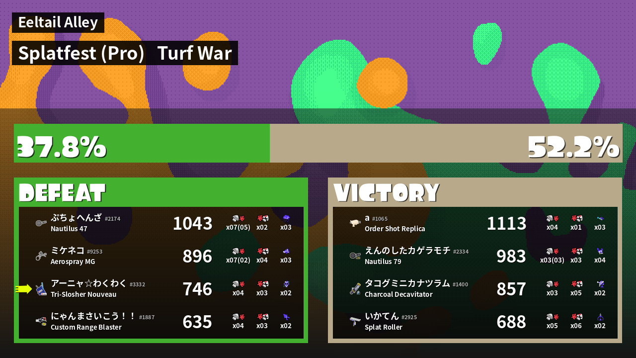 | Mode | Turf War - Splatfest (Pro) | ||