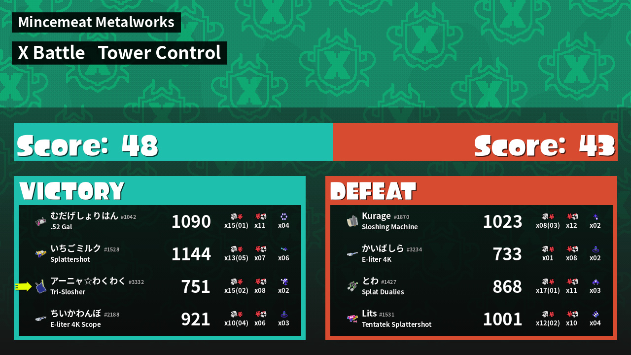 | Mode | Tower Control - X Battle | ||
