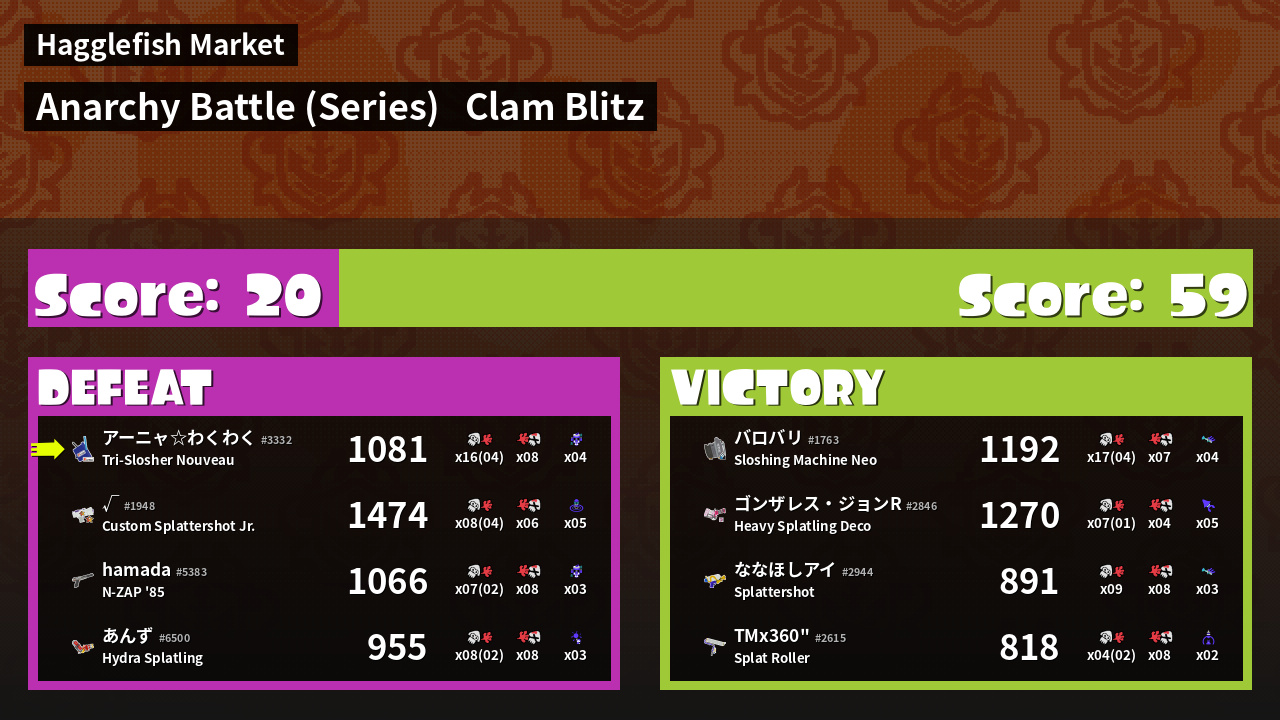 | Mode | Clam Blitz - Anarchy Battle (Series) | ||