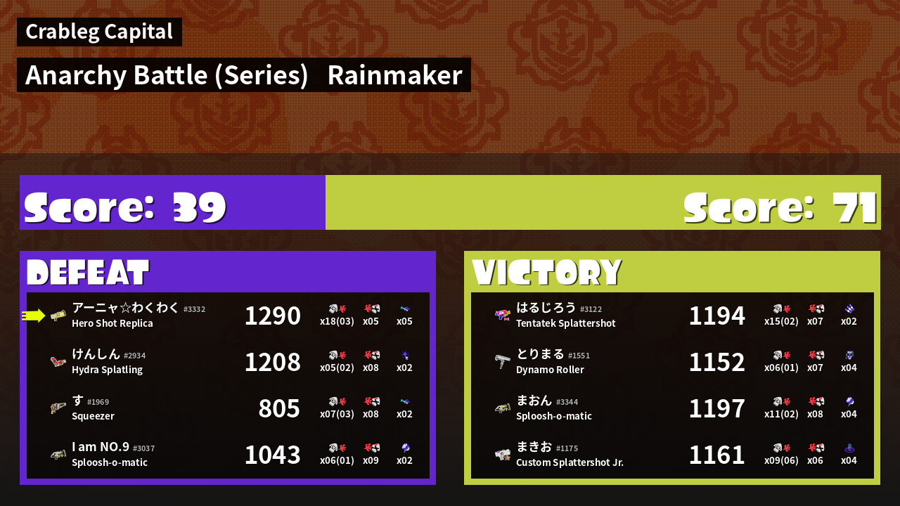 | Mode | Rainmaker - Anarchy Battle (Series) | ||