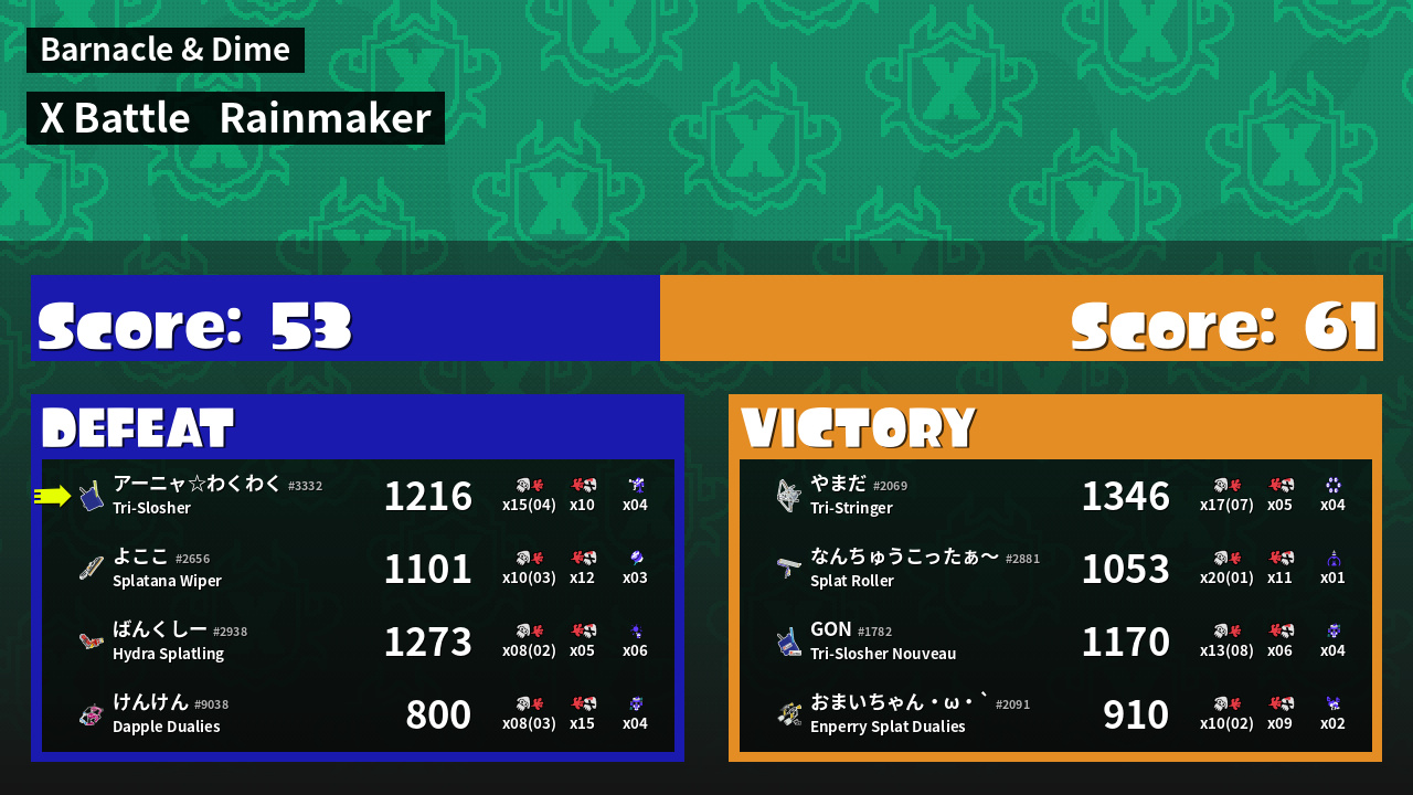 | Mode | Rainmaker - X Battle | ||