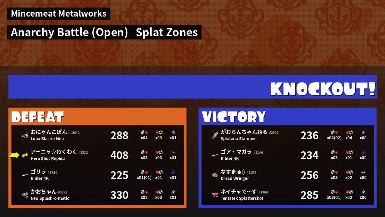 | Mode | Splat Zones - Anarchy Battle (Open) | ||