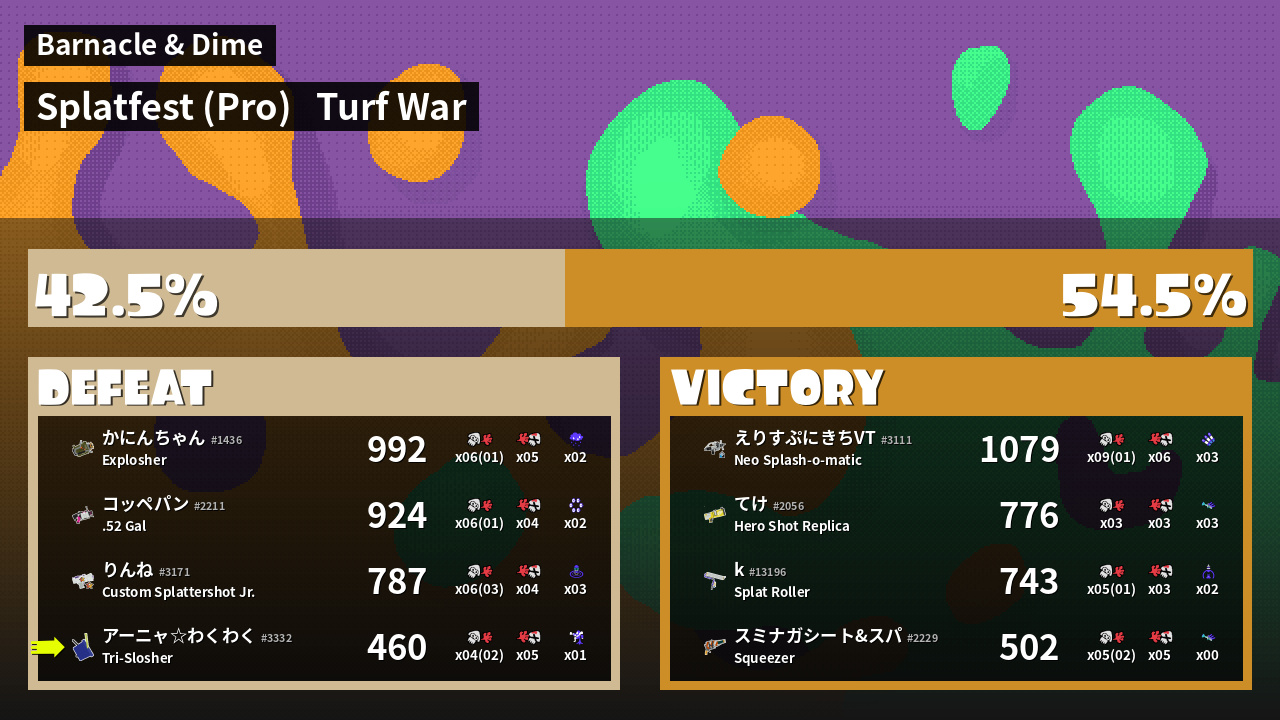 | Medals | #1 Ink Consumer #2 Splat Assister | ||