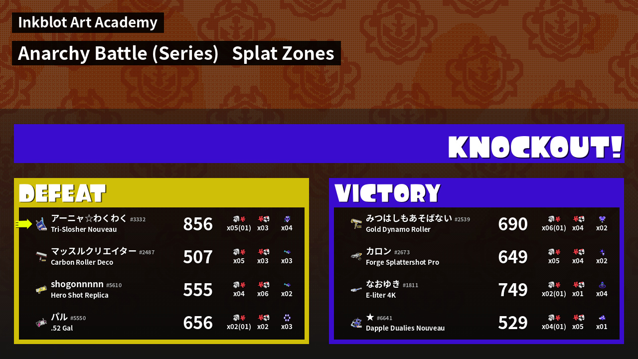 | Mode | Splat Zones - Anarchy Battle (Series) | ||