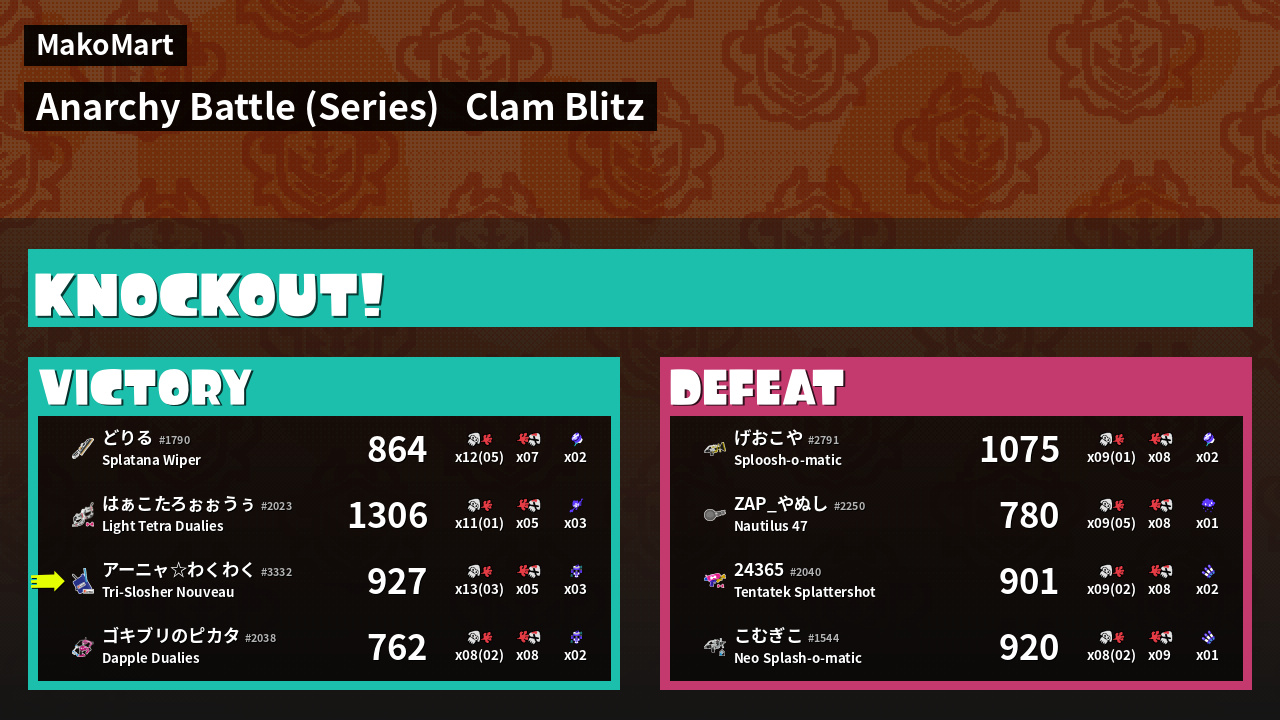 | Mode | Clam Blitz - Anarchy Battle (Series) | ||