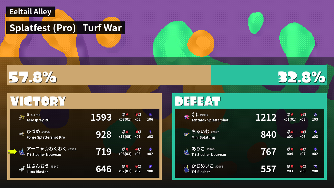 | Medals | #1 Home-Base Inker #1 Tacticooler User #2 Overall Splatter | ||