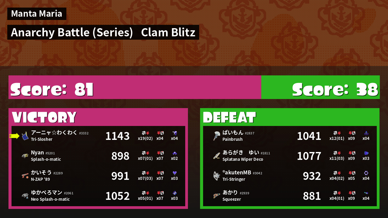 | Mode | Clam Blitz - Anarchy Battle (Series) | ||