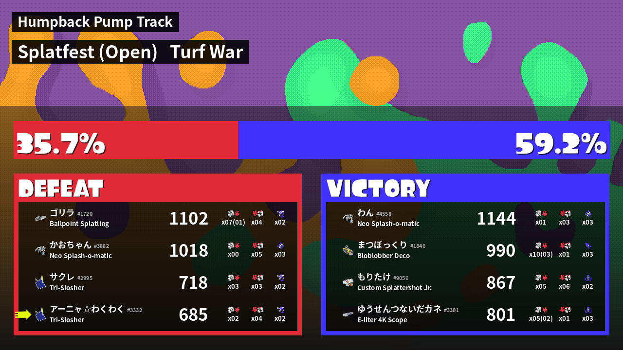 | Mode | Turf War - Splatfest (Open) | ||