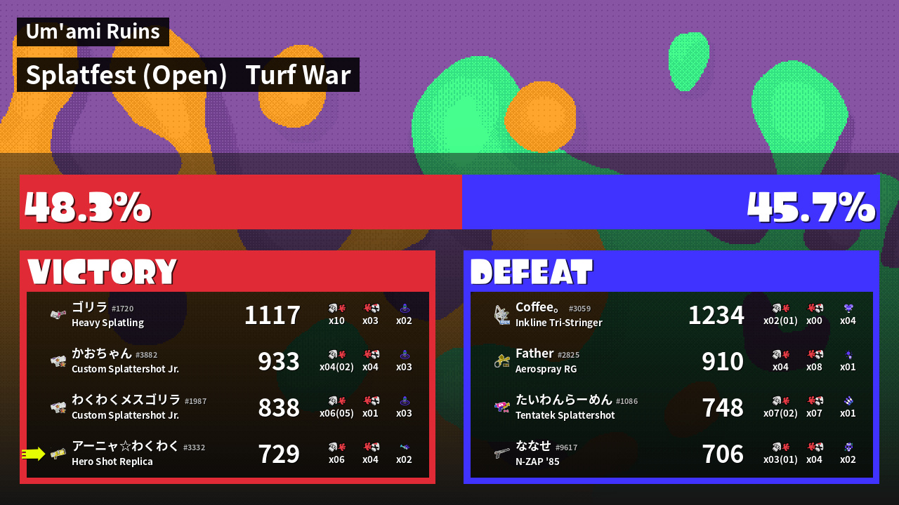 | Medals | #1 Enemy-Base Inker #1 Ground Traveler #1 Ink Consumer | ||