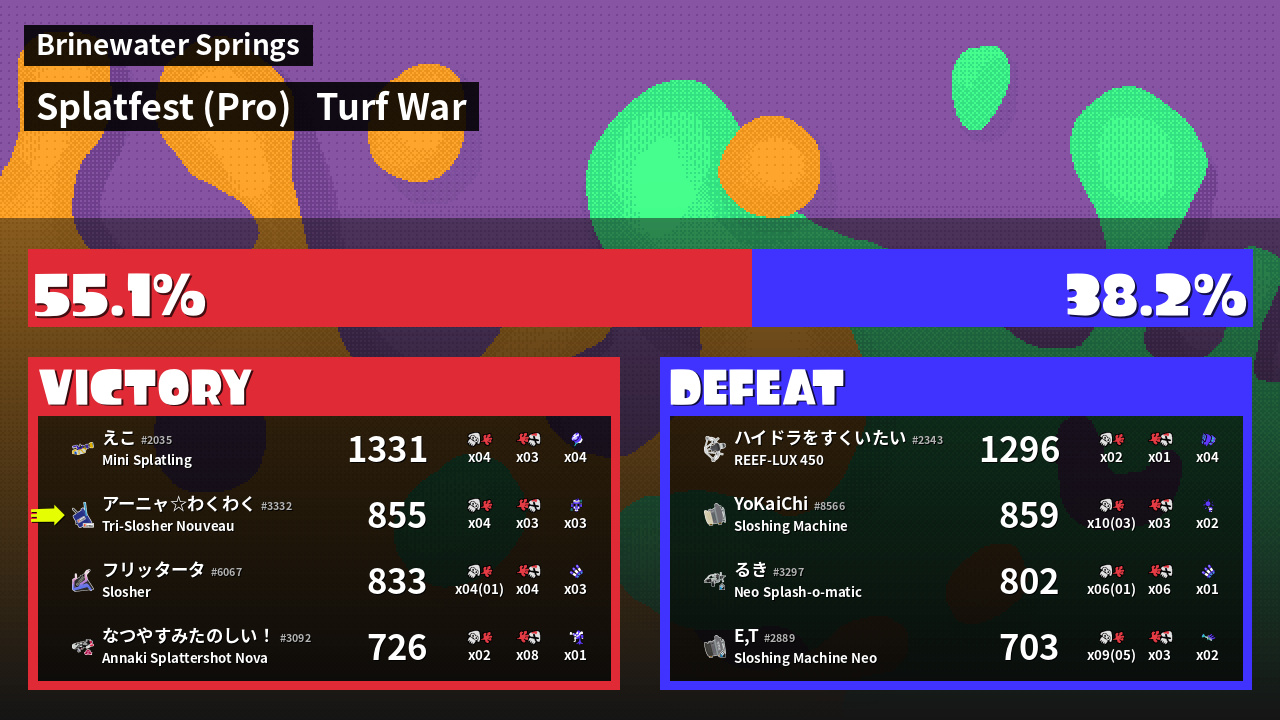 | Mode | Turf War - Splatfest (Pro) | ||