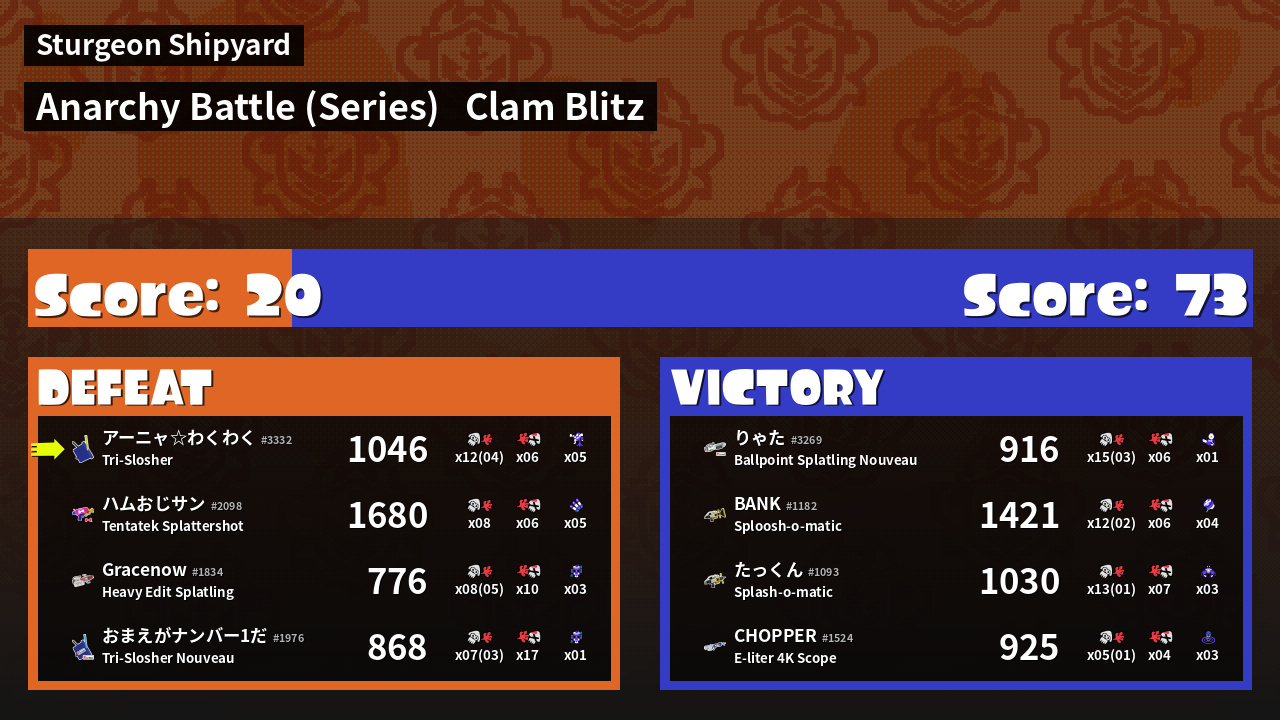 | Mode | Clam Blitz - Anarchy Battle (Series) | ||