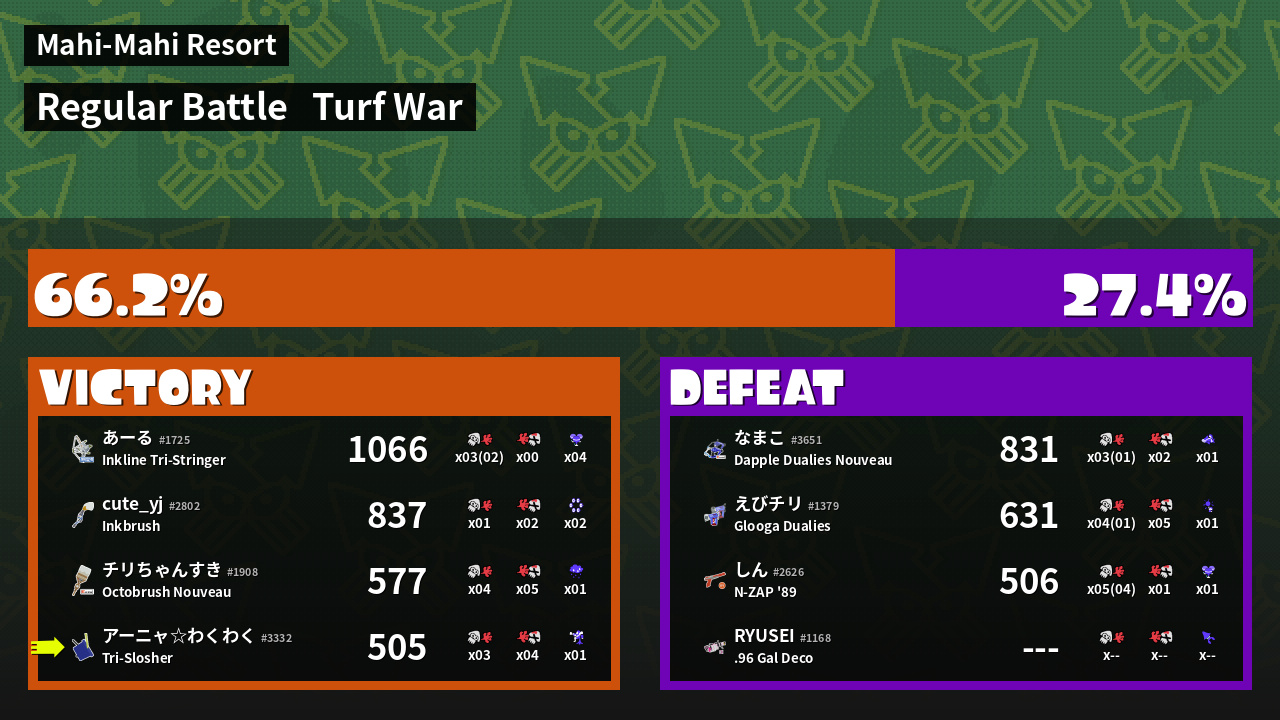 | Medals | #2 Overall Splatter #2 Popular Target #2 Enemy Splatter | ||