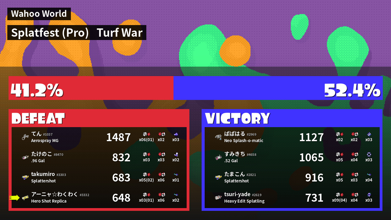 | Mode | Turf War - Splatfest (Pro) | ||