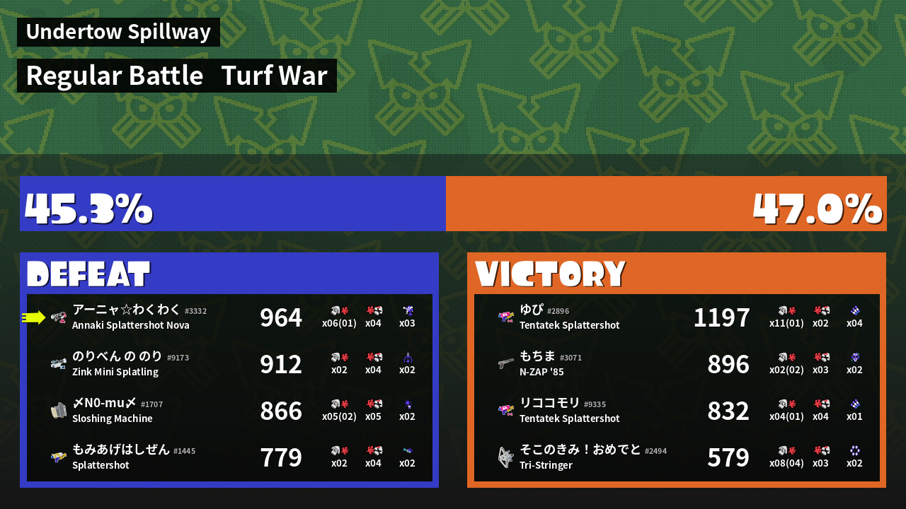 | Medals | #1 Overall Splatter #1 Turf Inker #1 Enemy Splatter | ||