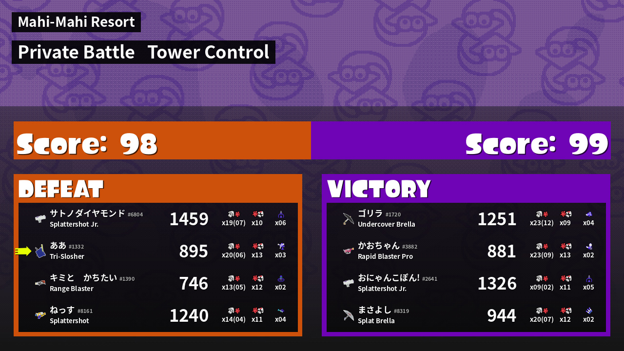 | Mode | Tower Control - Private Battle | ||
