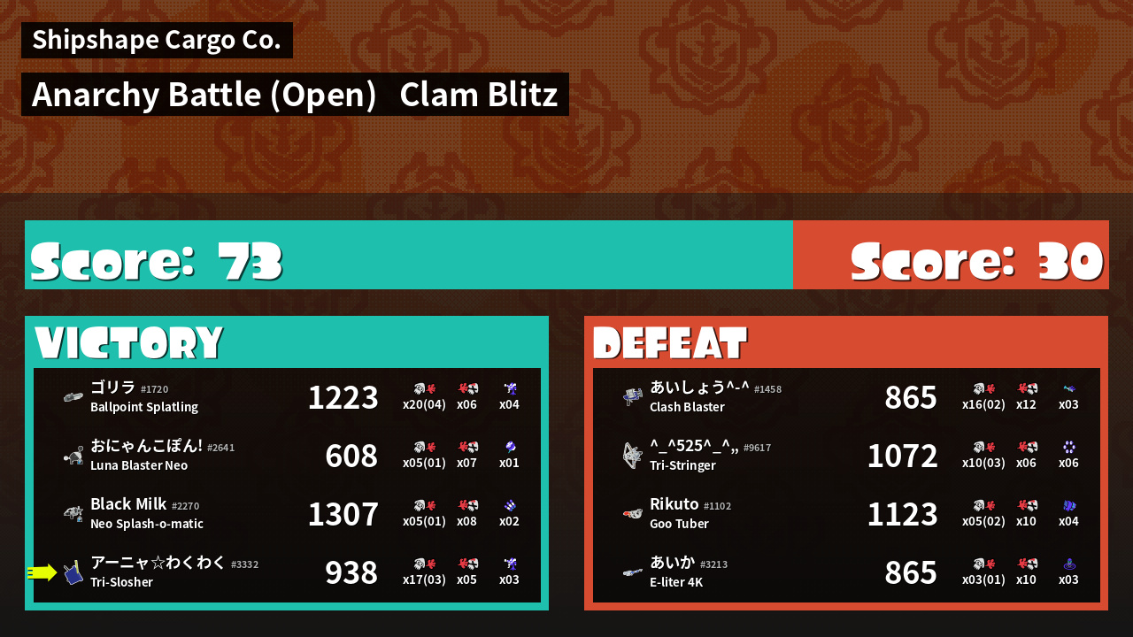 | Mode | Clam Blitz - Anarchy Battle (Open) | ||