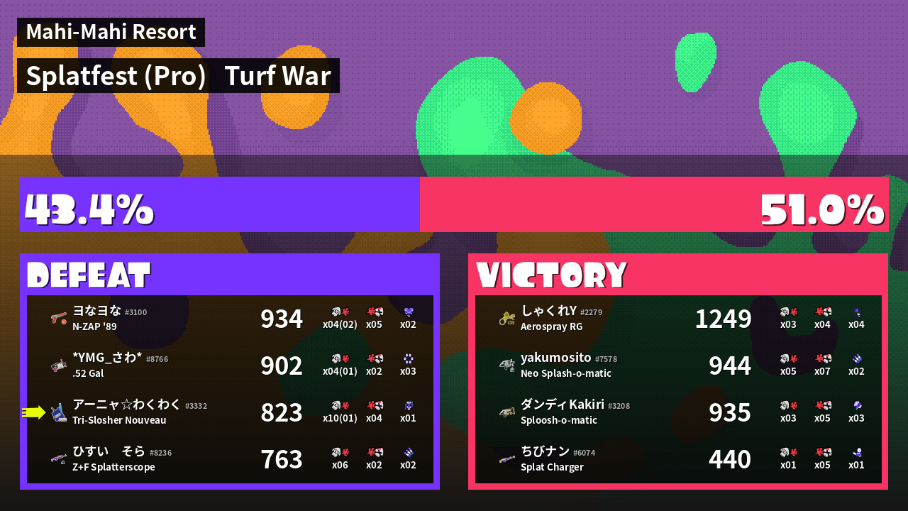 | Mode | Turf War - Splatfest (Pro) | ||