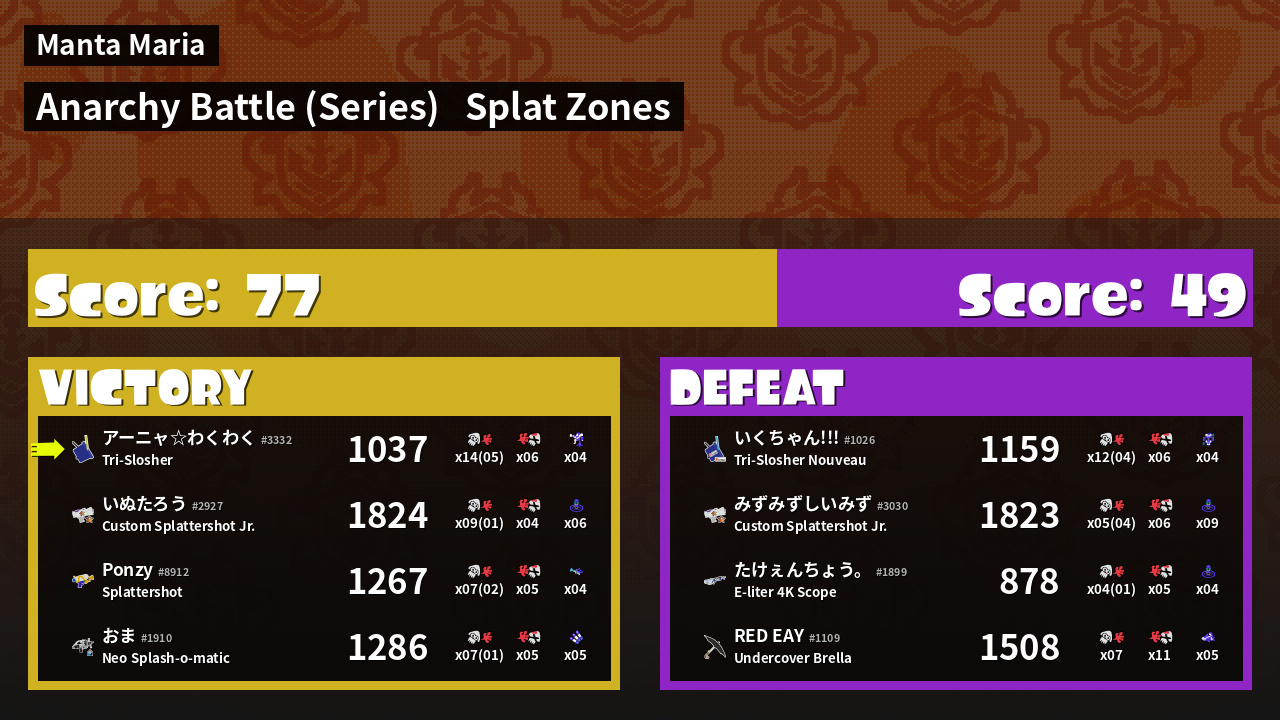 | Mode | Splat Zones - Anarchy Battle (Series) | ||