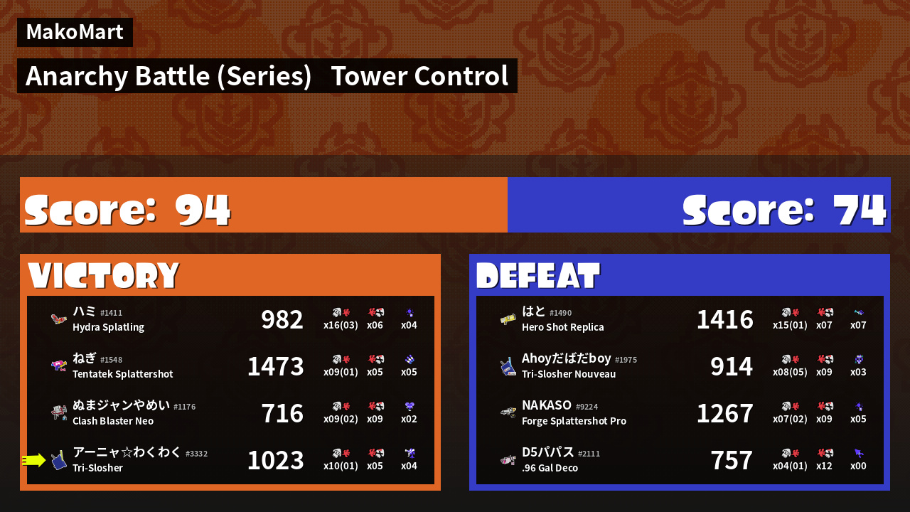 | Mode | Tower Control - Anarchy Battle (Series) | ||