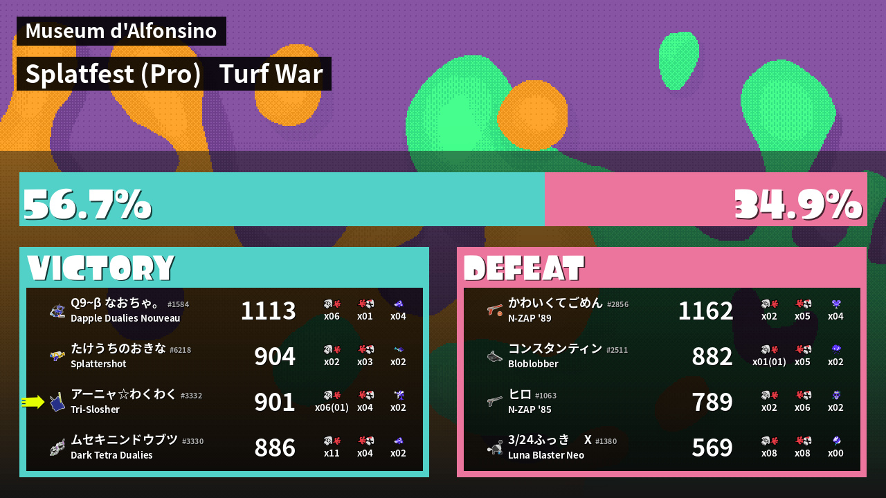 | Mode | Turf War - Splatfest (Pro) | ||