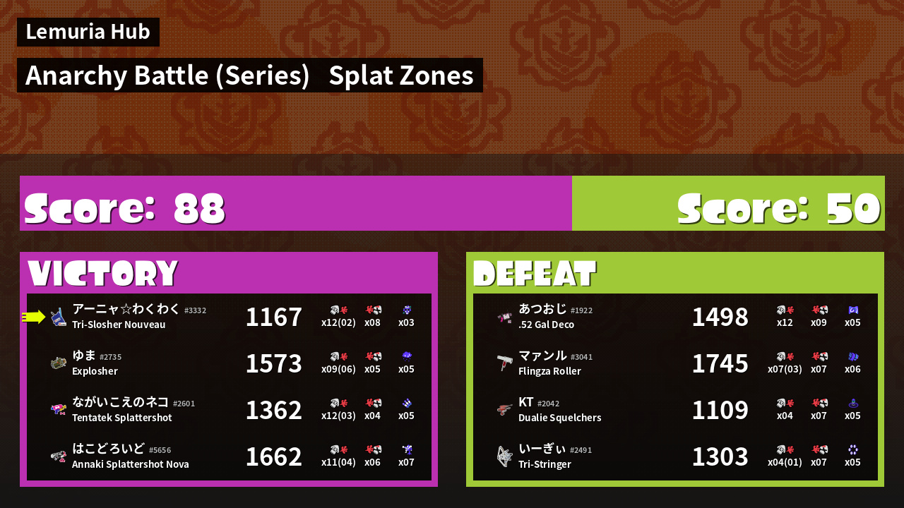 | Mode | Splat Zones - Anarchy Battle (Series) | ||