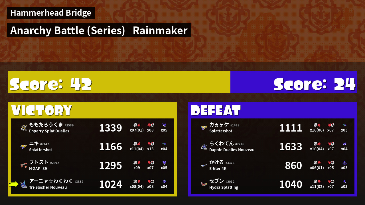| Mode | Rainmaker - Anarchy Battle (Series) | ||