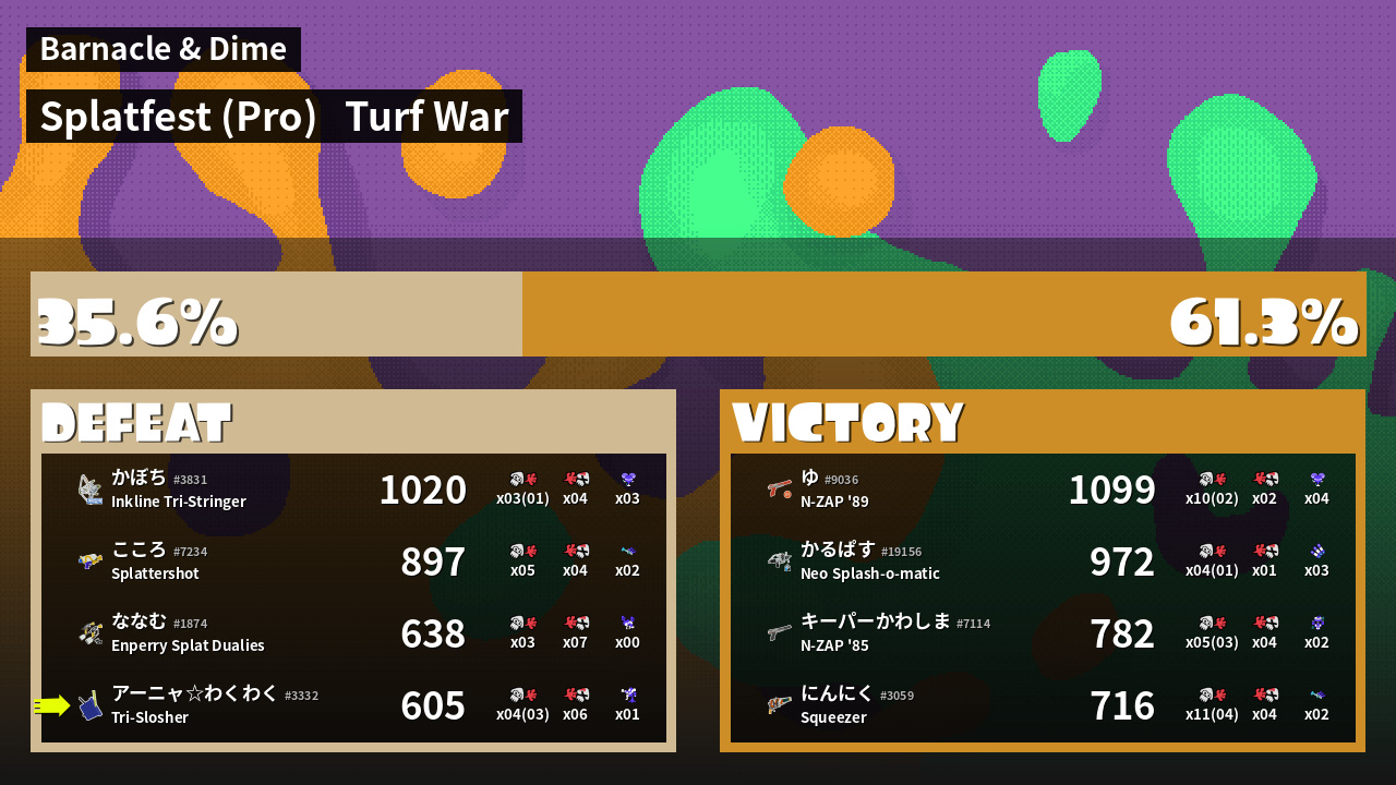 | Medals | #1 Popular Target #1 Splat Assister #1 Base Defender | ||