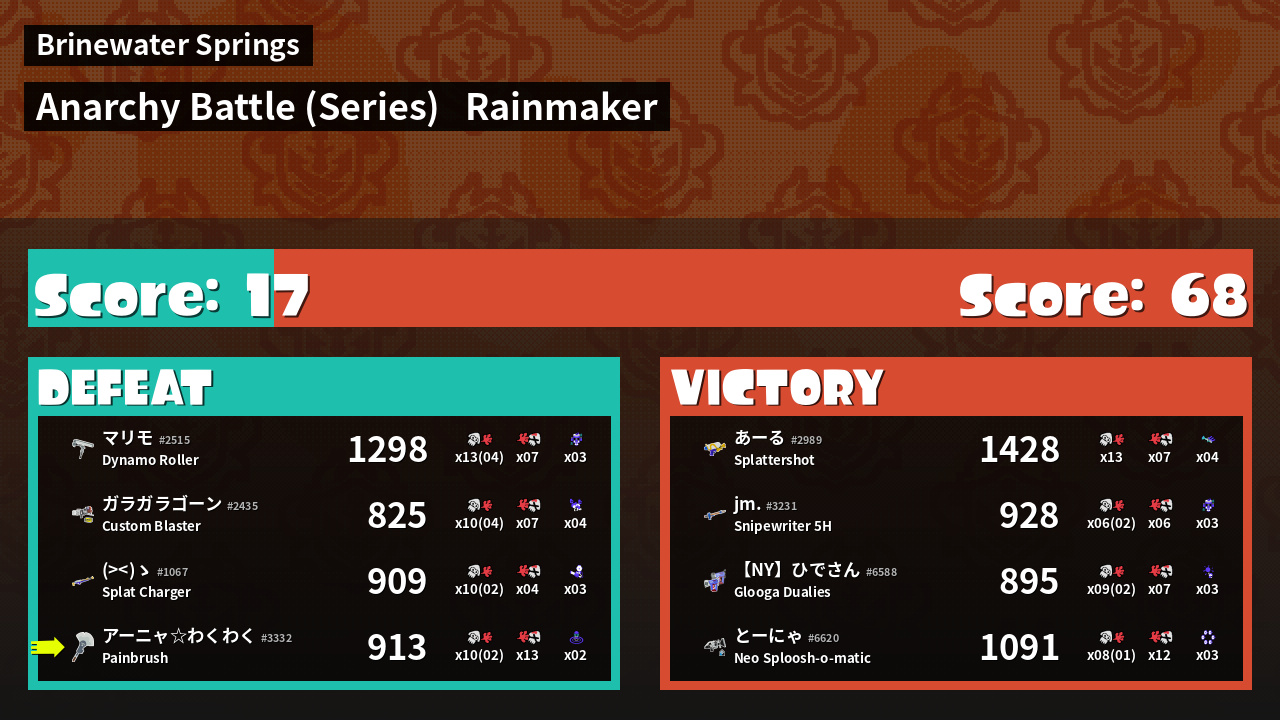 | Mode | Rainmaker - Anarchy Battle (Series) | ||