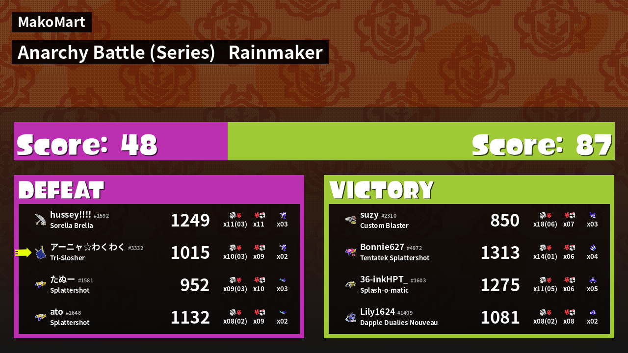 | Mode | Rainmaker - Anarchy Battle (Series) | ||