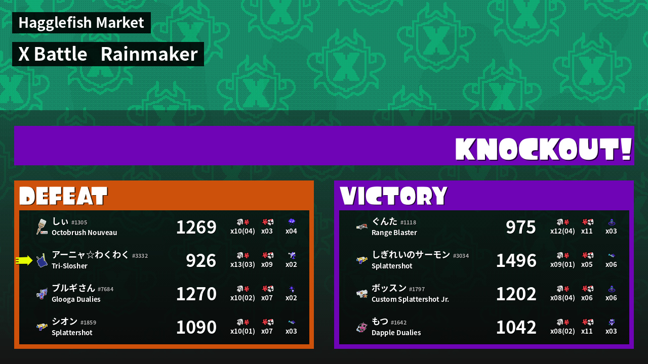 | Medals | #1 Overall Splatter #1 Enemy Splatter #1 Rainmaker Stopper | ||