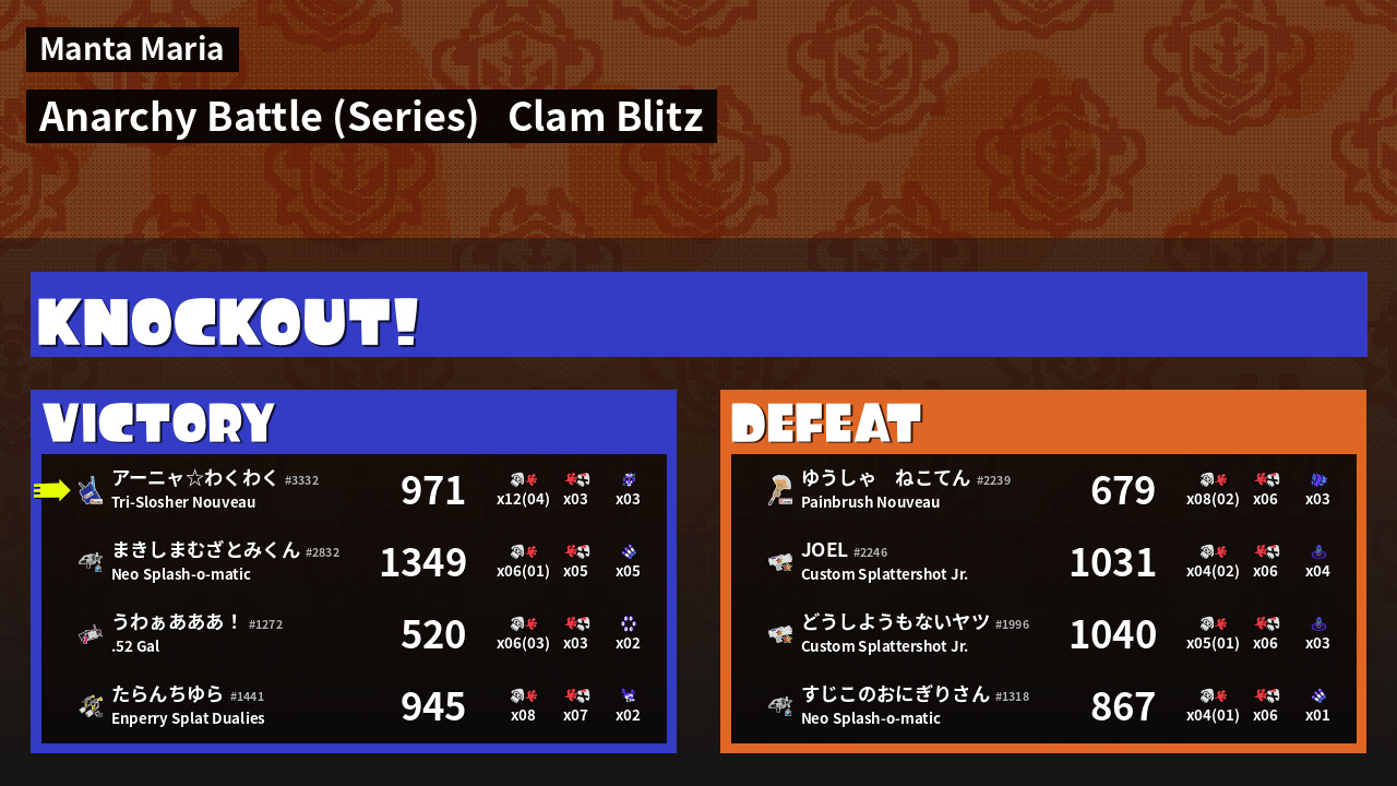 | Mode | Clam Blitz - Anarchy Battle (Series) | ||