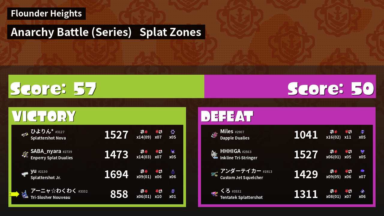 | Mode | Splat Zones - Anarchy Battle (Series) | ||