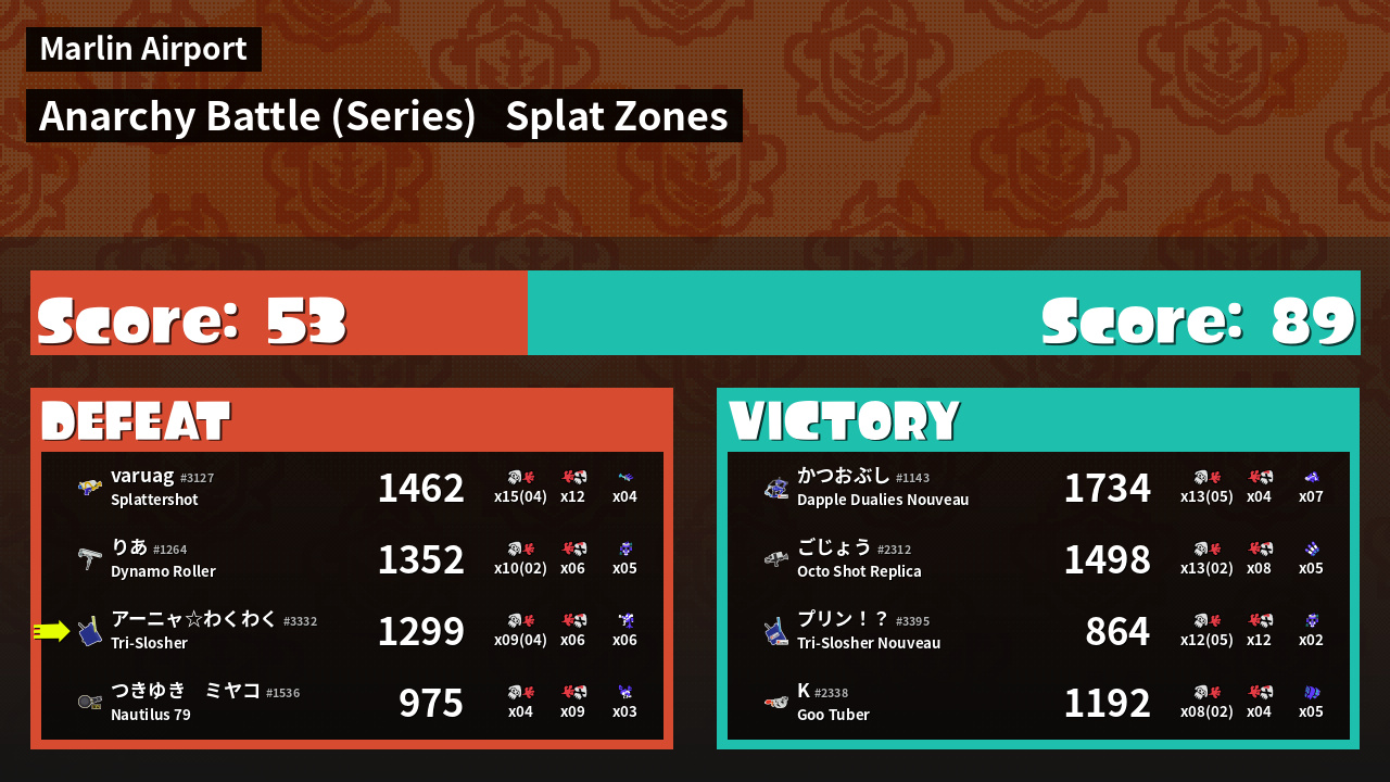 | Medals | #1 Splat Zone Guard #1 Splat Assister #1 Inkjet User | ||