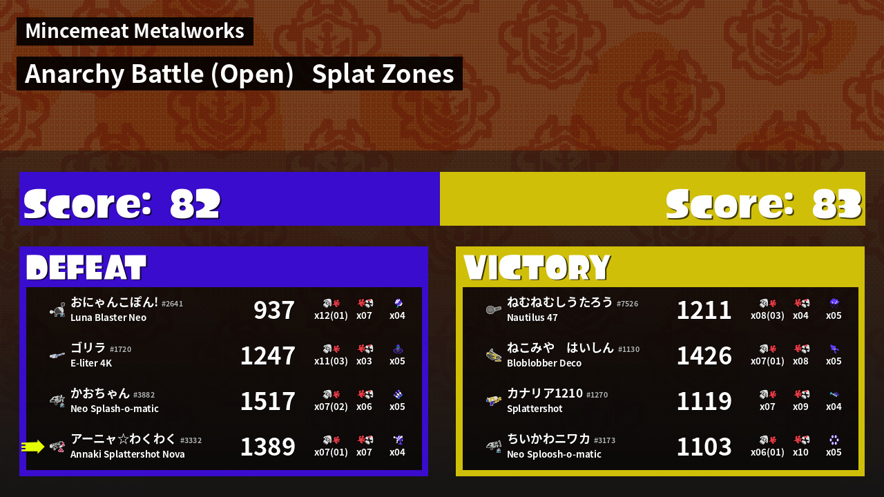 | Mode | Splat Zones - Anarchy Battle (Open) | ||