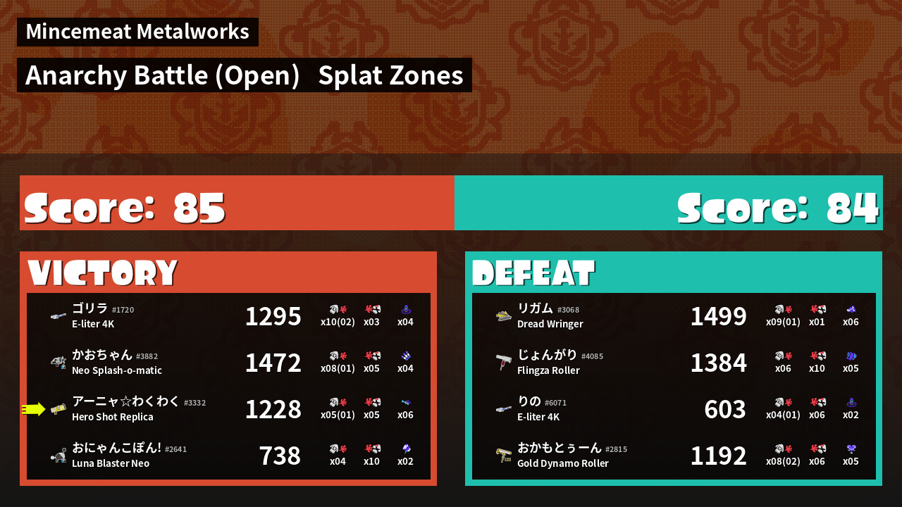 | Mode | Splat Zones - Anarchy Battle (Open) | ||