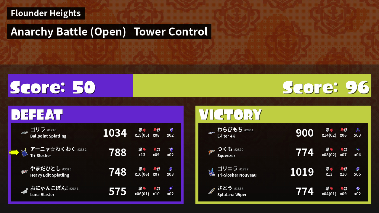 | Mode | Tower Control - Anarchy Battle (Open) | ||