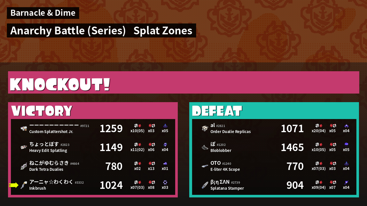 | Mode | Splat Zones - Anarchy Battle (Series) | ||