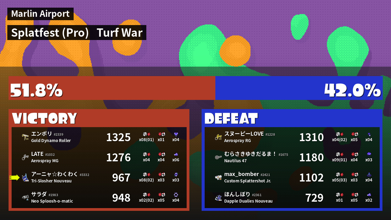 | Medals | #1 Overall Splatter #1 Splat Assister #1 Tacticooler User | ||