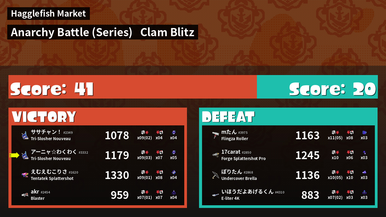 | Mode | Clam Blitz - Anarchy Battle (Series) | ||