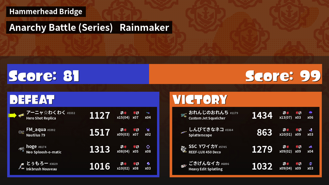 | Mode | Rainmaker - Anarchy Battle (Series) | ||