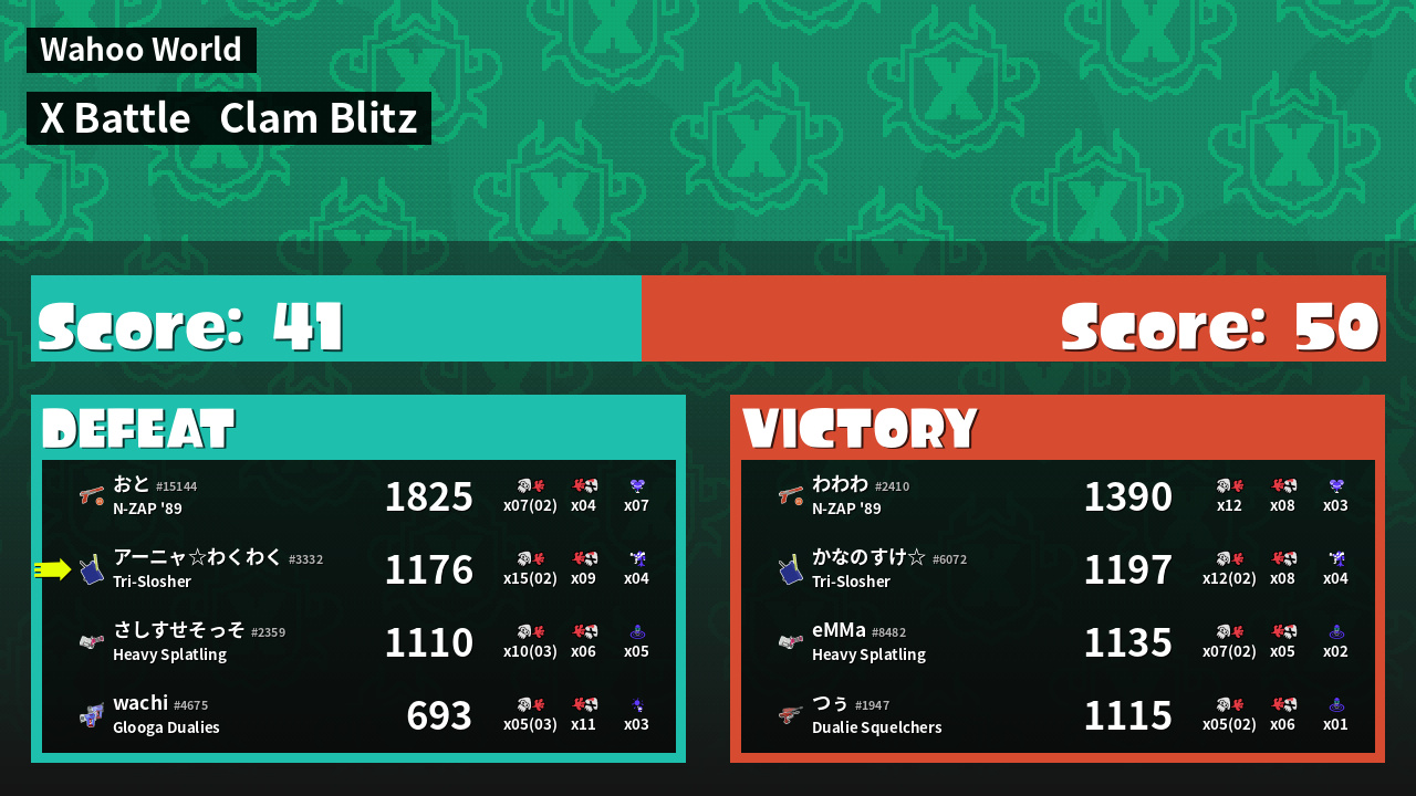 | Medals | #1 Overall Splatter #1 Enemy Splatter #1 Clam Stopper | ||
