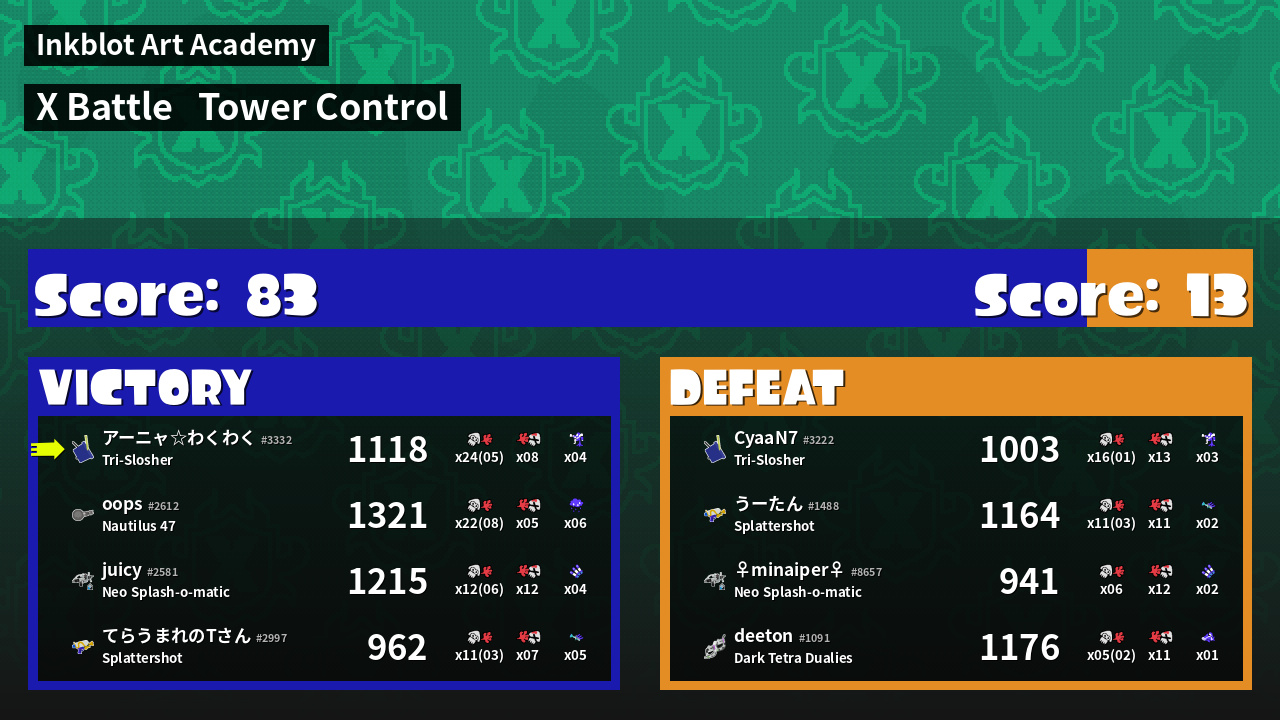 | Medals | #1 Overall Splatter Record-Score Setter #1 Super Jump Spot | ||