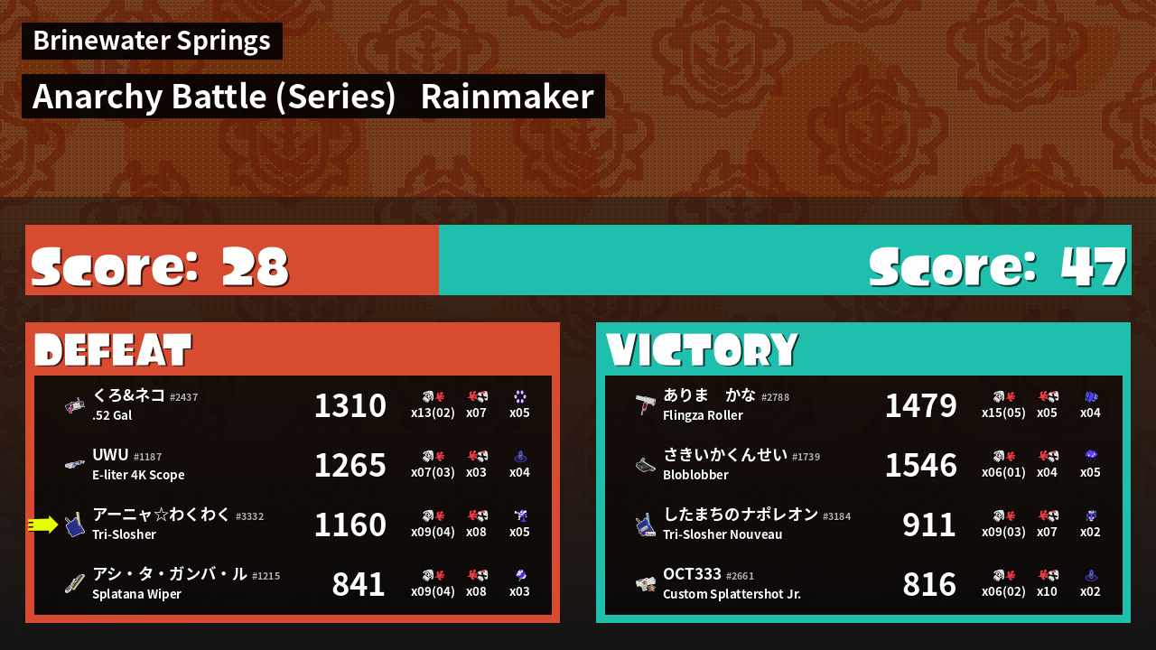 | Medals | #1 Popular Target #1 Splat Assister #1 Rainmaker Stopper | ||