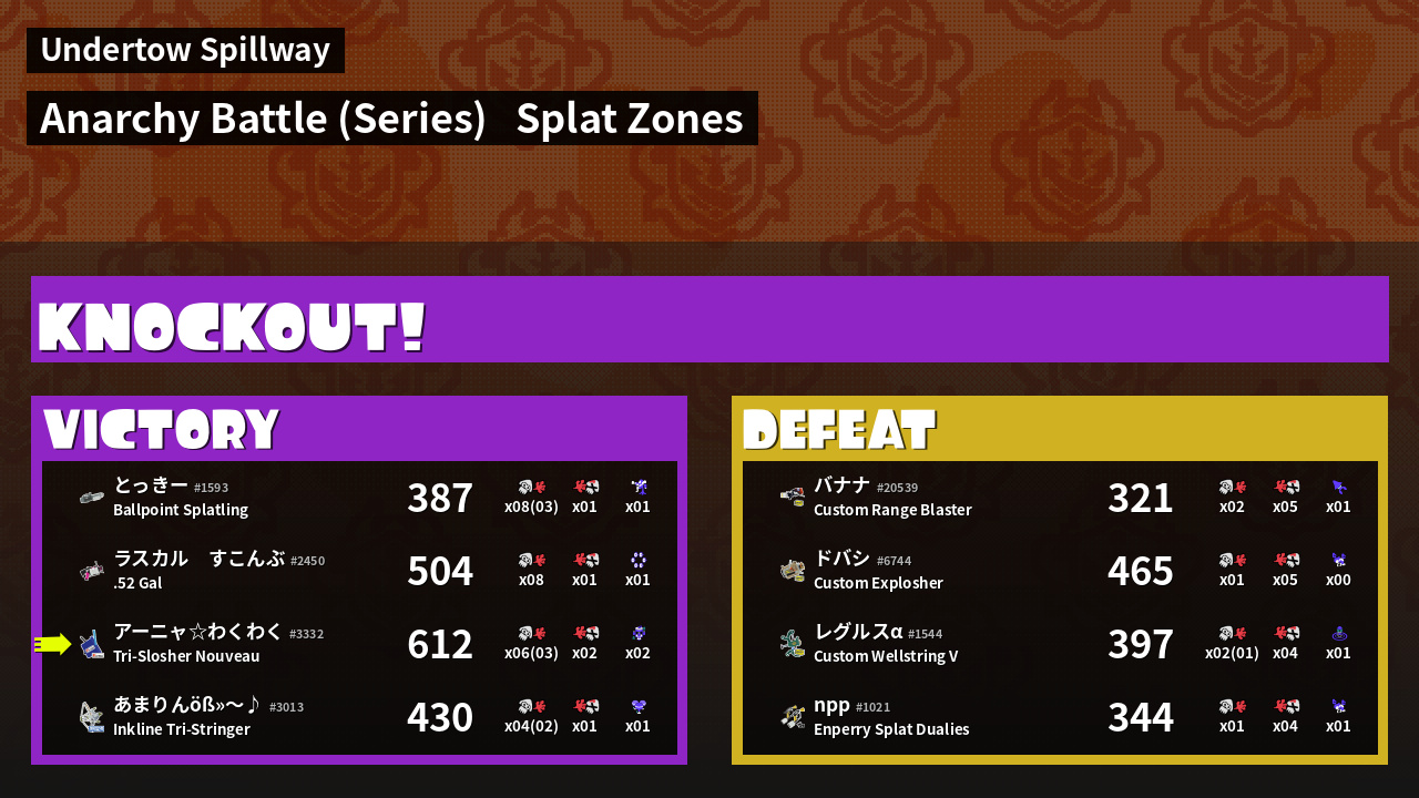 | Mode | Splat Zones - Anarchy Battle (Series) | ||