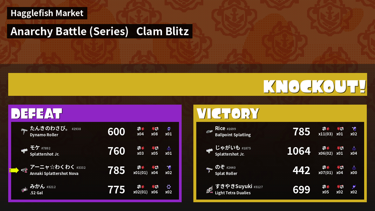 | Mode | Clam Blitz - Anarchy Battle (Series) | ||